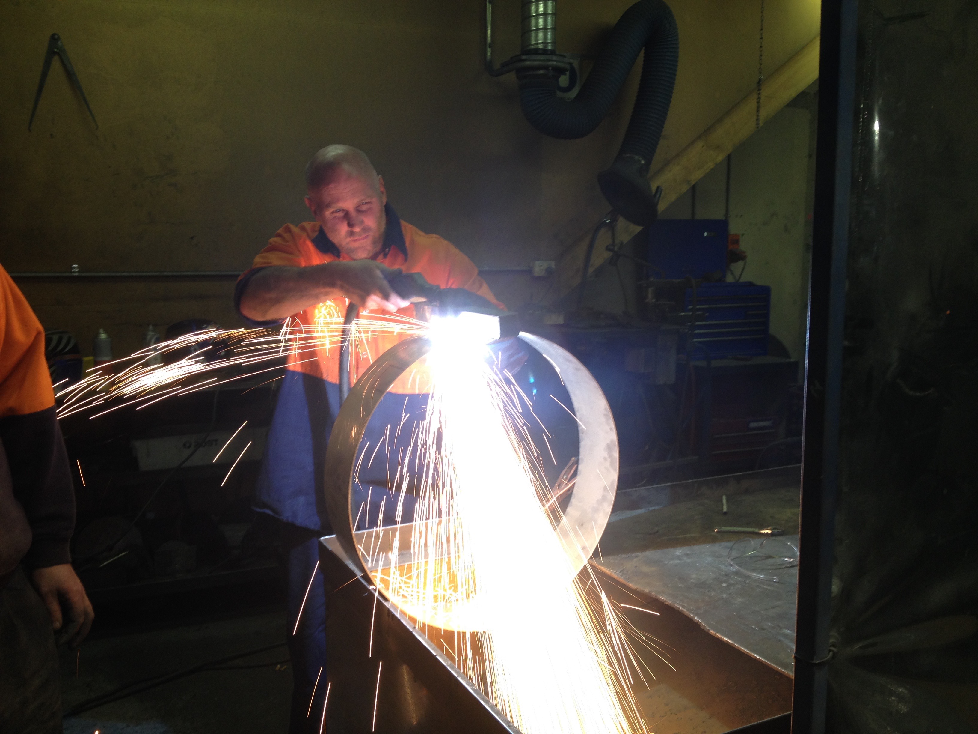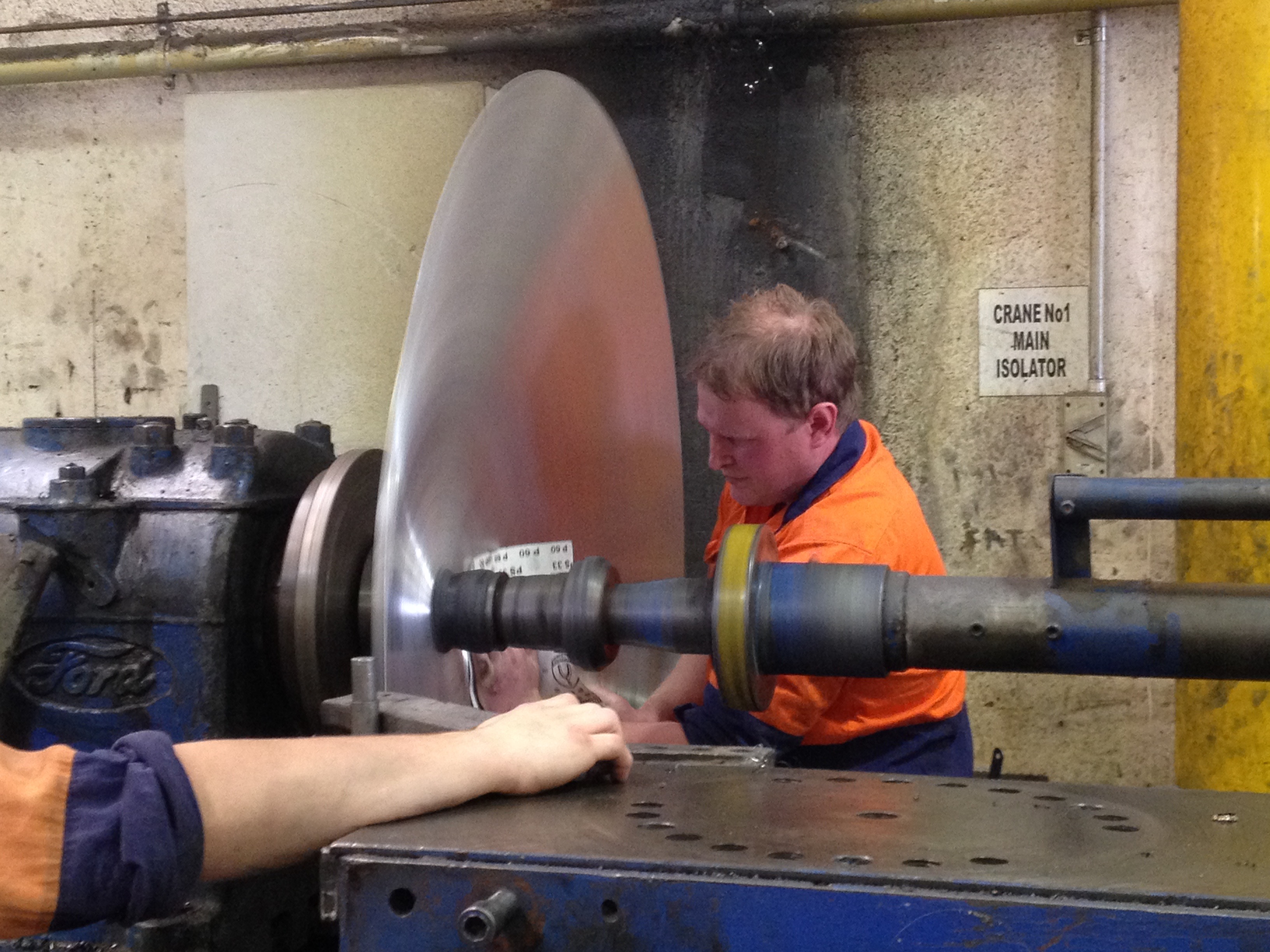Stuart Purves from Australian Galleries was supportive of this project right from the go and then it was up to us to work out the logistics to make this happen. Excitingly we found a metal spinner in Lilydale who was use to artistic requests and gave us a tour of the factory – I always love seeing what factories can fabricate and create! Geoff from Whitehorse Industries assisted us and made the 1340mm diameter reservoir for Slow Melt. below are a few photos from that day.