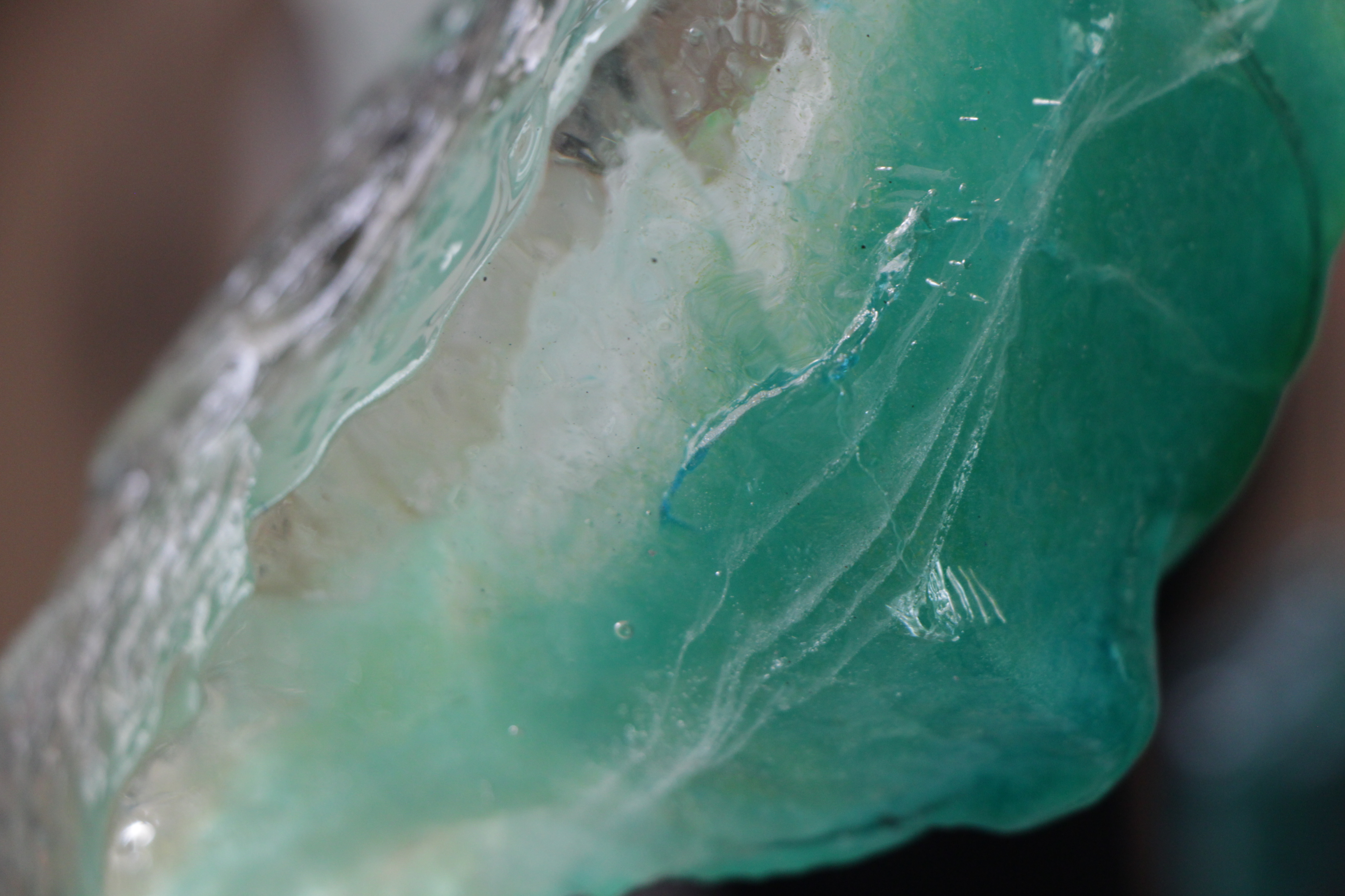 The gradual incremental loss to the Arctic and Antarctic ice regions may be documented by science but it is a distant reality for the majority of urban-based inhabitants. The following images show the different waterways depicted through colour changes. In this installation at Australian Galleries, the melt water drains from the aluminium reservoir via a metal channel and is discharged through a hole in the gallery wall to run onto the footpath. Water-based pigments stain and wet the path, presenting passers-by with an abject end to a once jewel-like form. The colours of the frozen ice-rocks reflect our survey of the composition of various bodies of water from tannin-tinged rivers to the turquoise of glacial melt water.