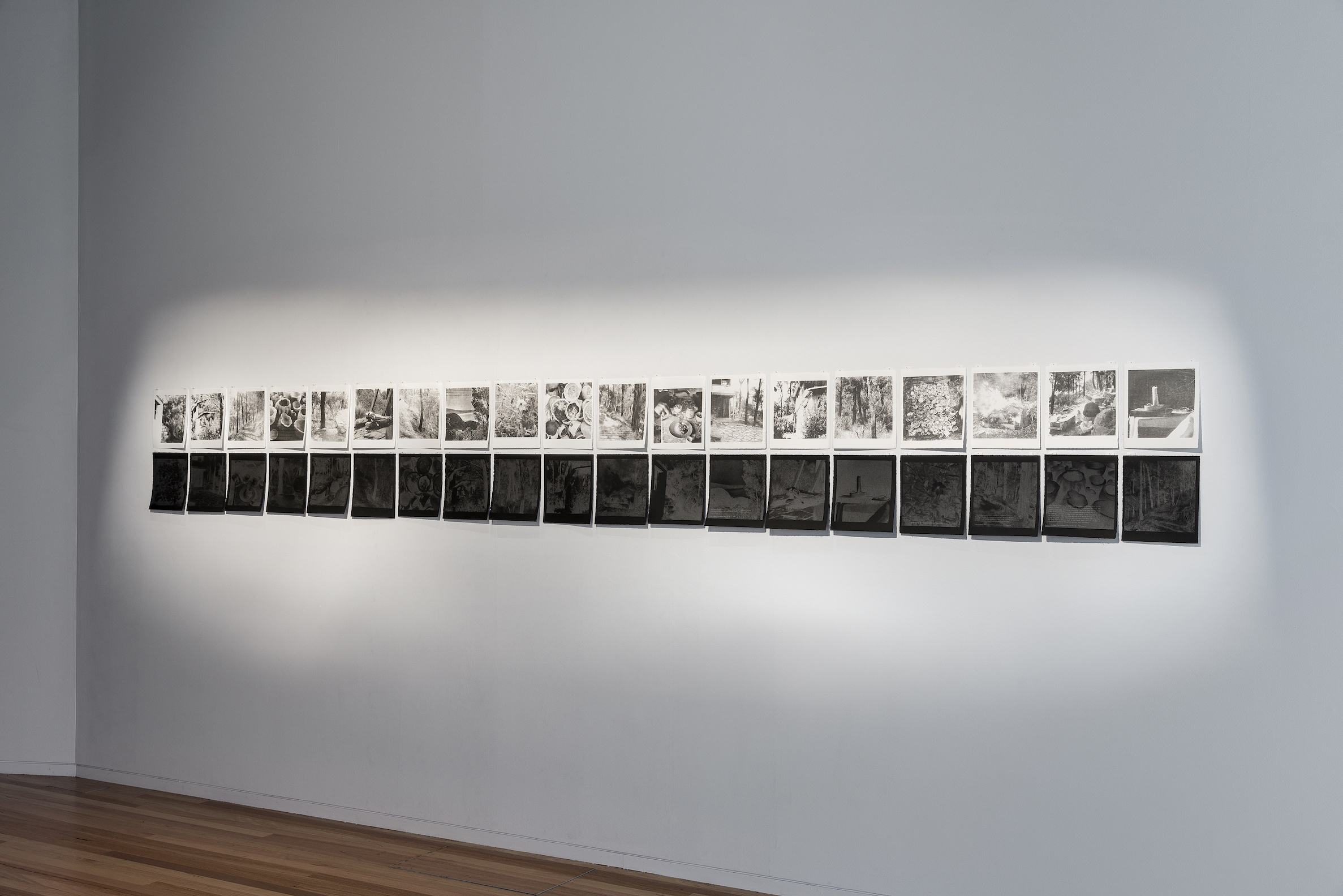 This installation references, in part, the largess of Walling’s vision, the substantial planning and collaborative labour involved in constructing her gardens within a male dominated industry. In 1947/8, Walling built her holiday shack, ‘The Chalet’ at Eastern View along the Great Ocean Road with the assistance of friends, Rosamond Dowling, Joan Niewand (Twid) and Alistair Smith, on a difficult site with a 1:3 fall. Walling’s book, ‘The Happiest Days of My Life’ is the catalyst for my installation. Walling writes with joy witnessing a friend hand-build a small pot from clay, firing and filling it with a local native plant species, Thomasia petalocalyx (Paper Flower). Walling and Twid transplanted the Paper Flower from Moggs Creek and its descendants still thrive at both sites. ‘The Chalet’ was subsequently burnt in the fires of the 1960’s, as were two other residences during Walling’s lifetime. BUILT: for Rosa and Twid with love is a memorial to Walling’s legacy, referencing the twin roles of destruction and regeneration that fire has played in this country.